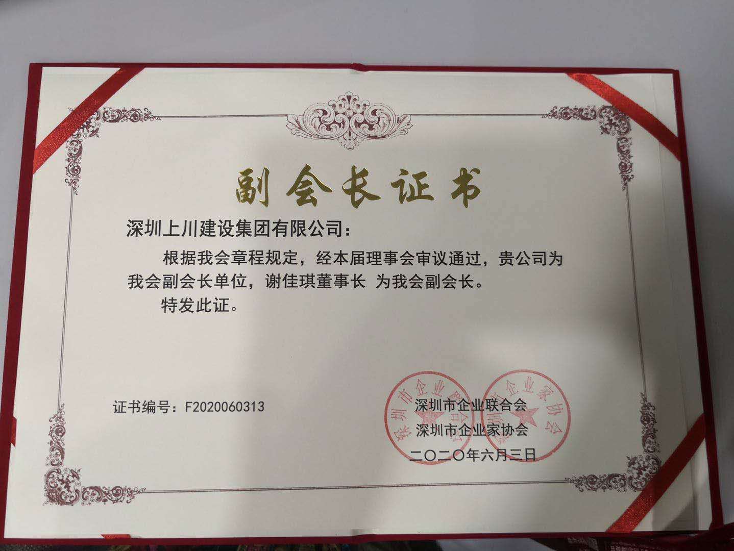 信譽(yù)的見證,上川建設(shè)集團(tuán)董事長當(dāng)選為深圳市企業(yè)聯(lián)合會及企業(yè)家協(xié)會副會長!